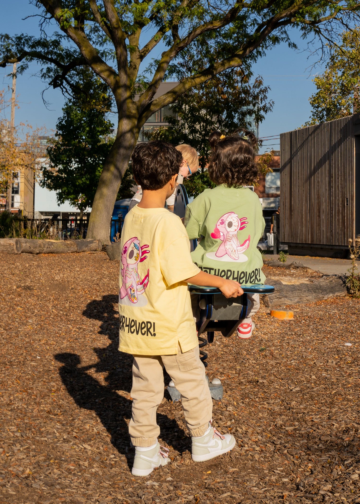 Wowe Family Apparel features designs that incorporate the axolotl, a unique aquatic creature.